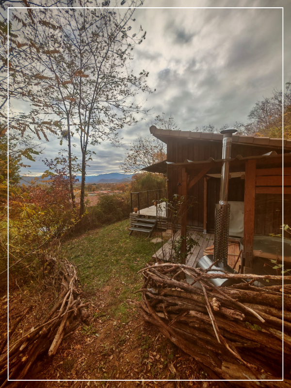 Cabane pour deux personnes avec spa bain nordique jacuzzi privatif et petit déjeuner maison inclus.