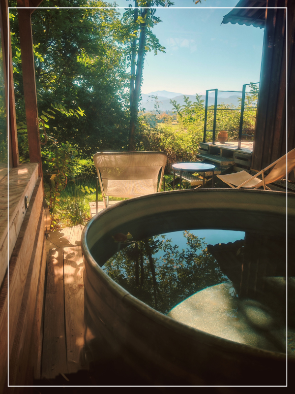 Venez le temps d’une ou plusieurs nuits dans une cabane de standing avec spa nordique jacuzzi privatif face aux Pyrénées. Dans le calme des affres de la vie, du lit au fauteuil et du fauteuil au jacuzzi au son mélodieux des oiseaux et du bruissement des feuilles.